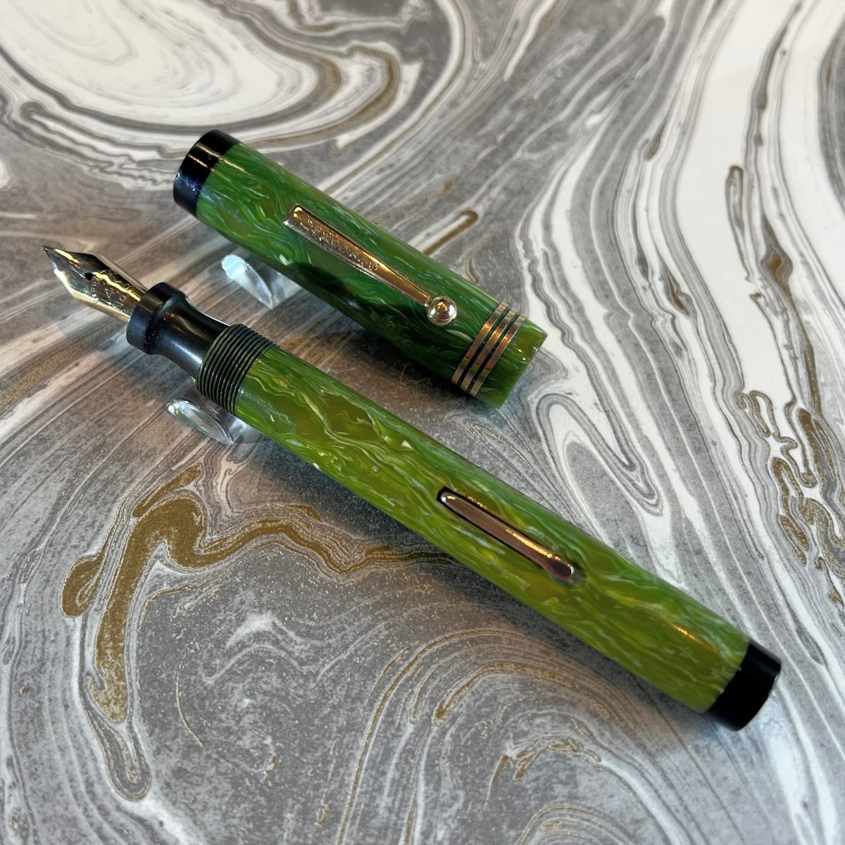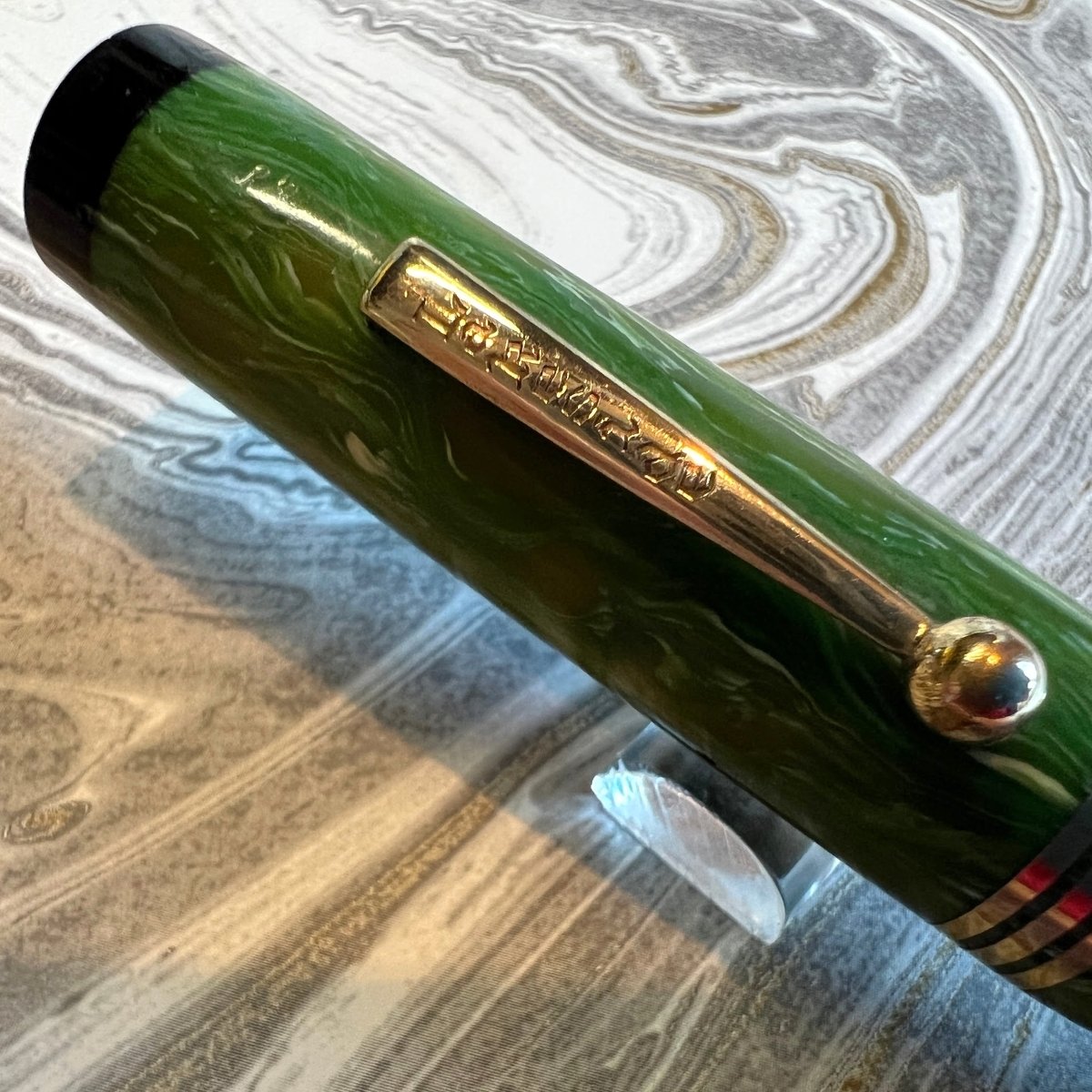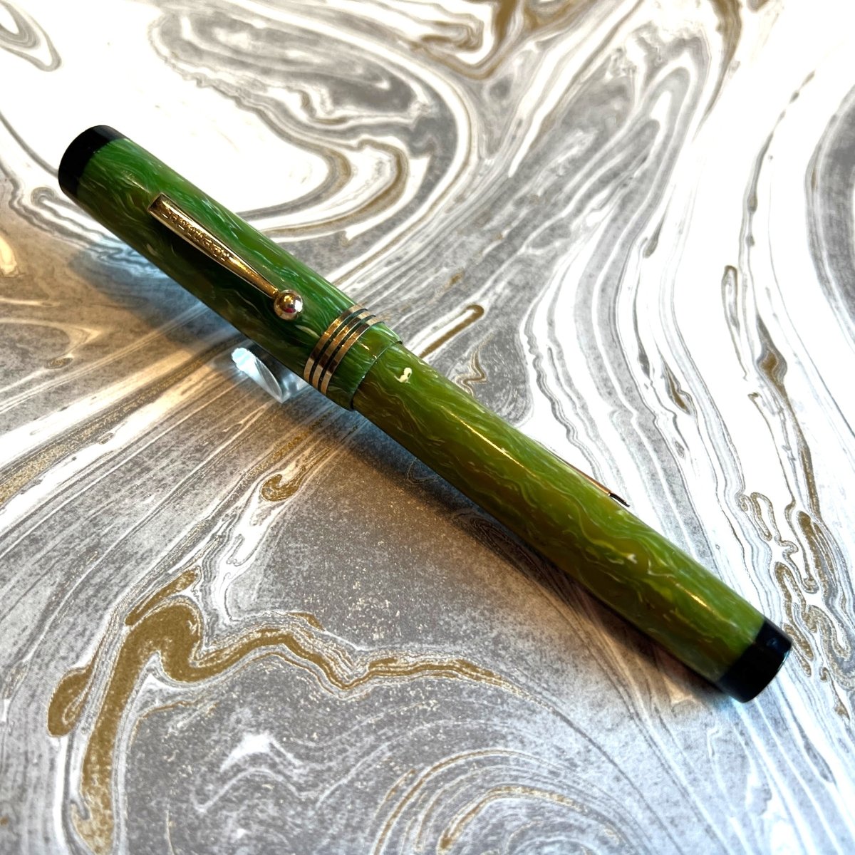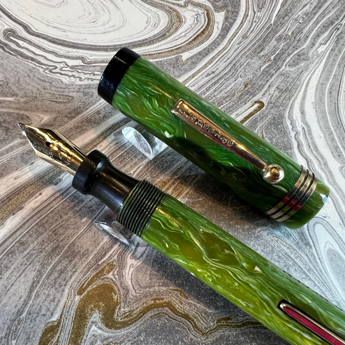Additional Information: Personalized “OTTO NEGEN”. Lakeside was a sub brand of National Pen Products, well established maker of mid-quality pens, Lakeside being for Montgomery Ward and often with interesting plastics. This appears to be a “deluxe” model with 3 cap rings and contrasting black ends. Slight dings on cap. No brassing.