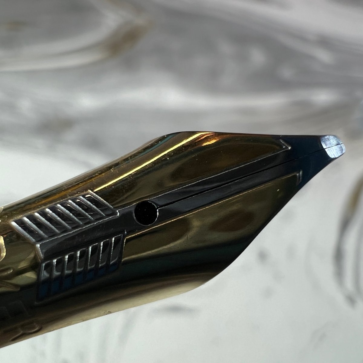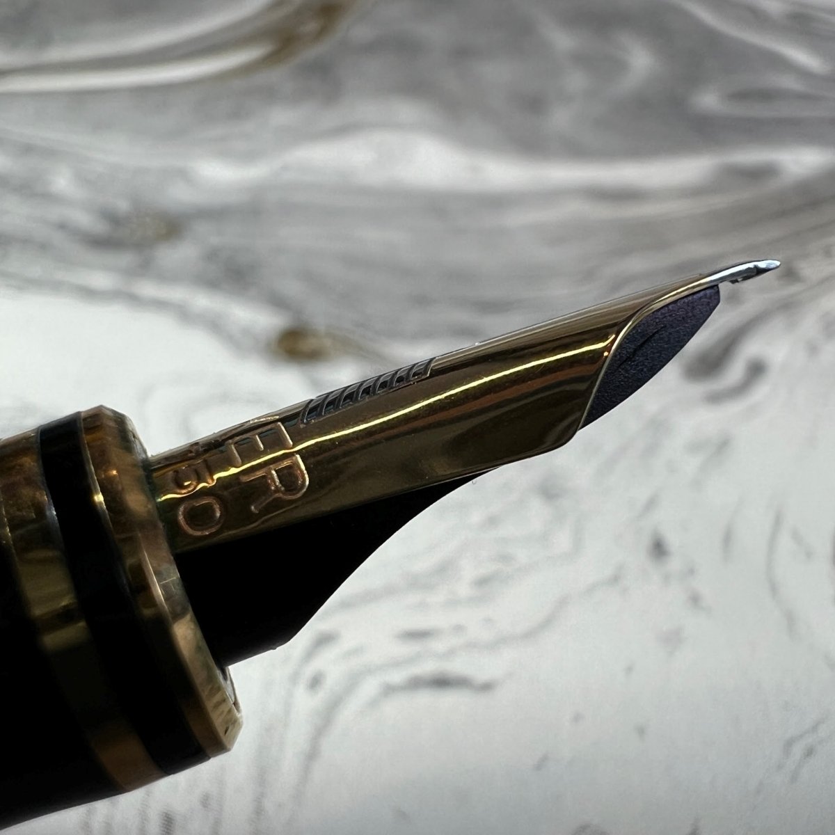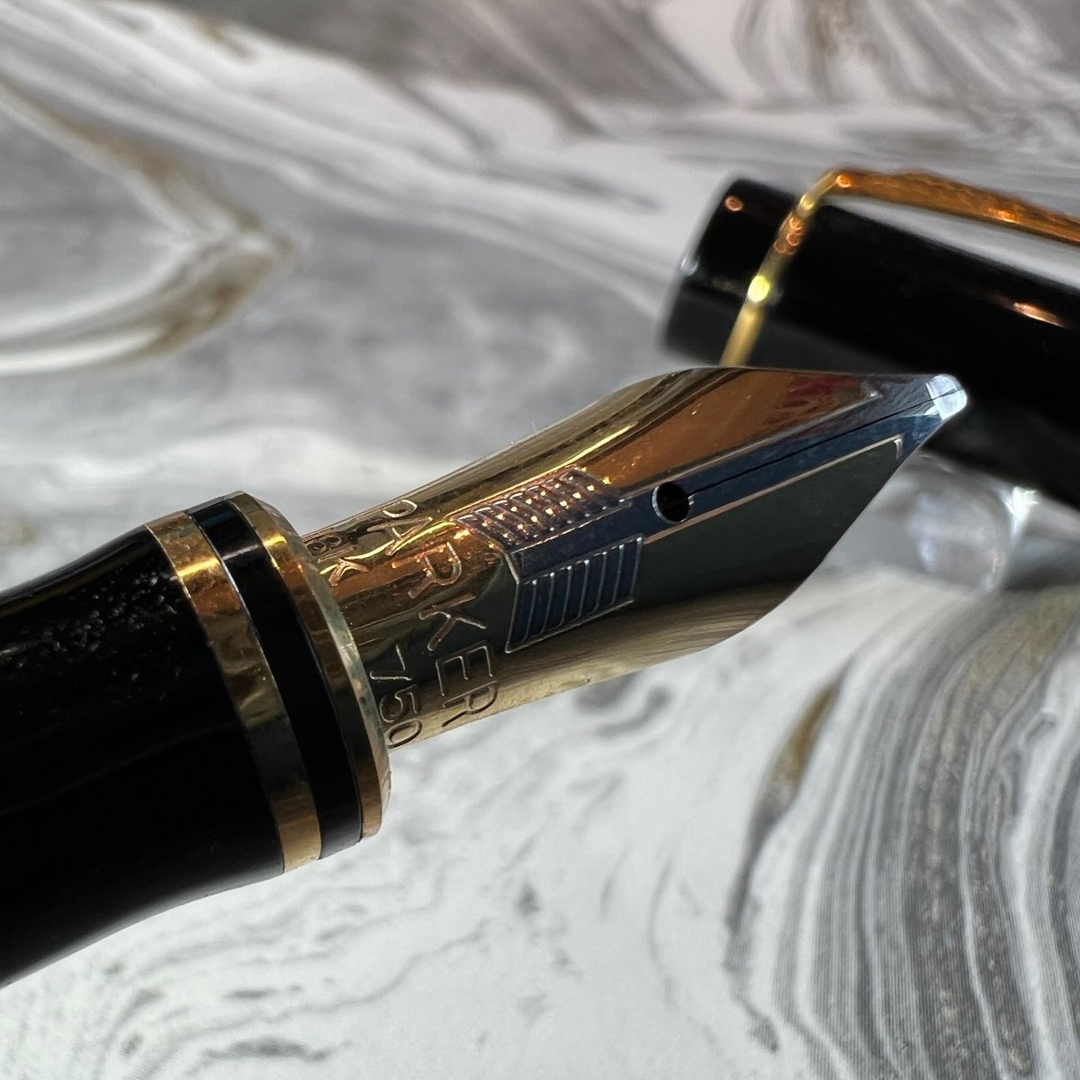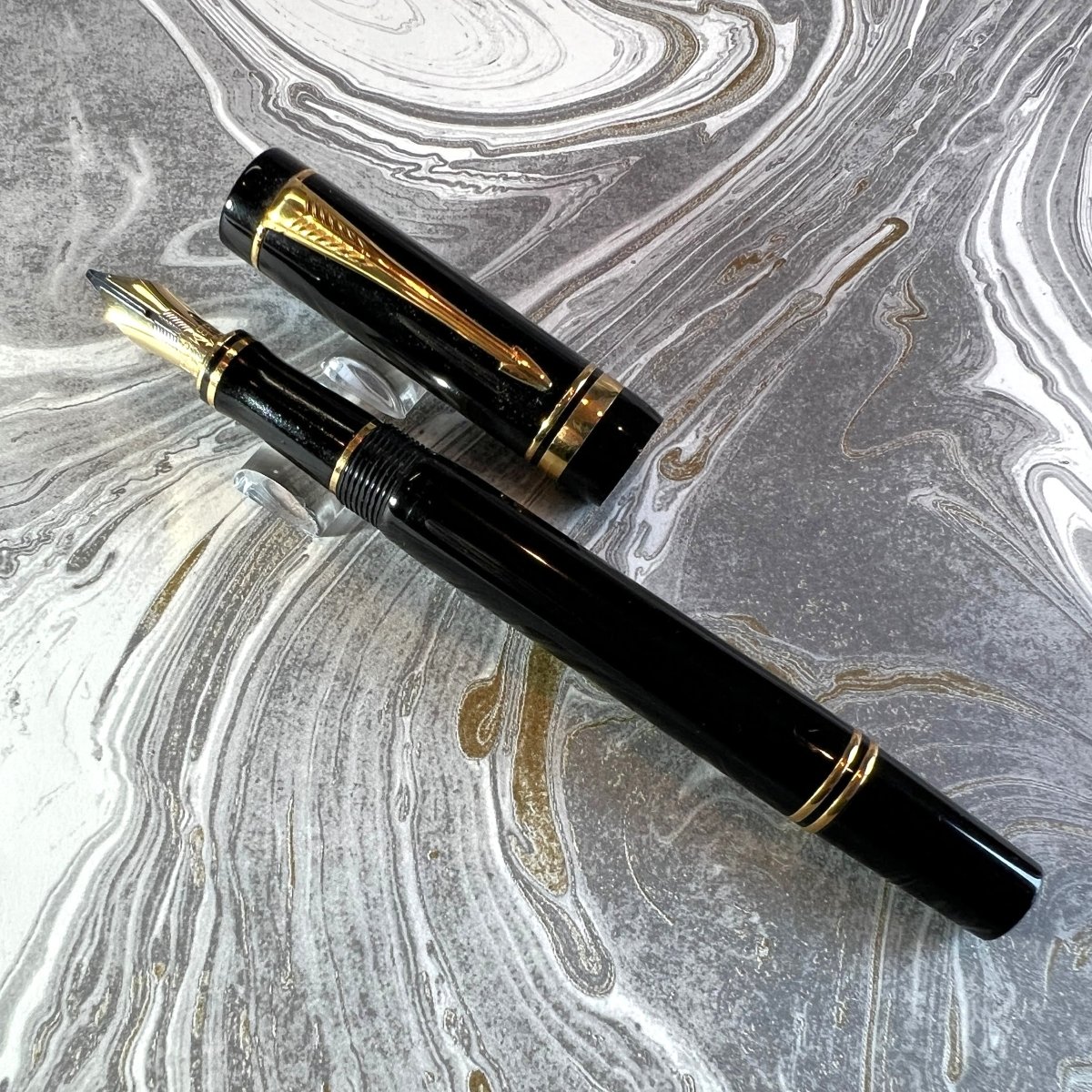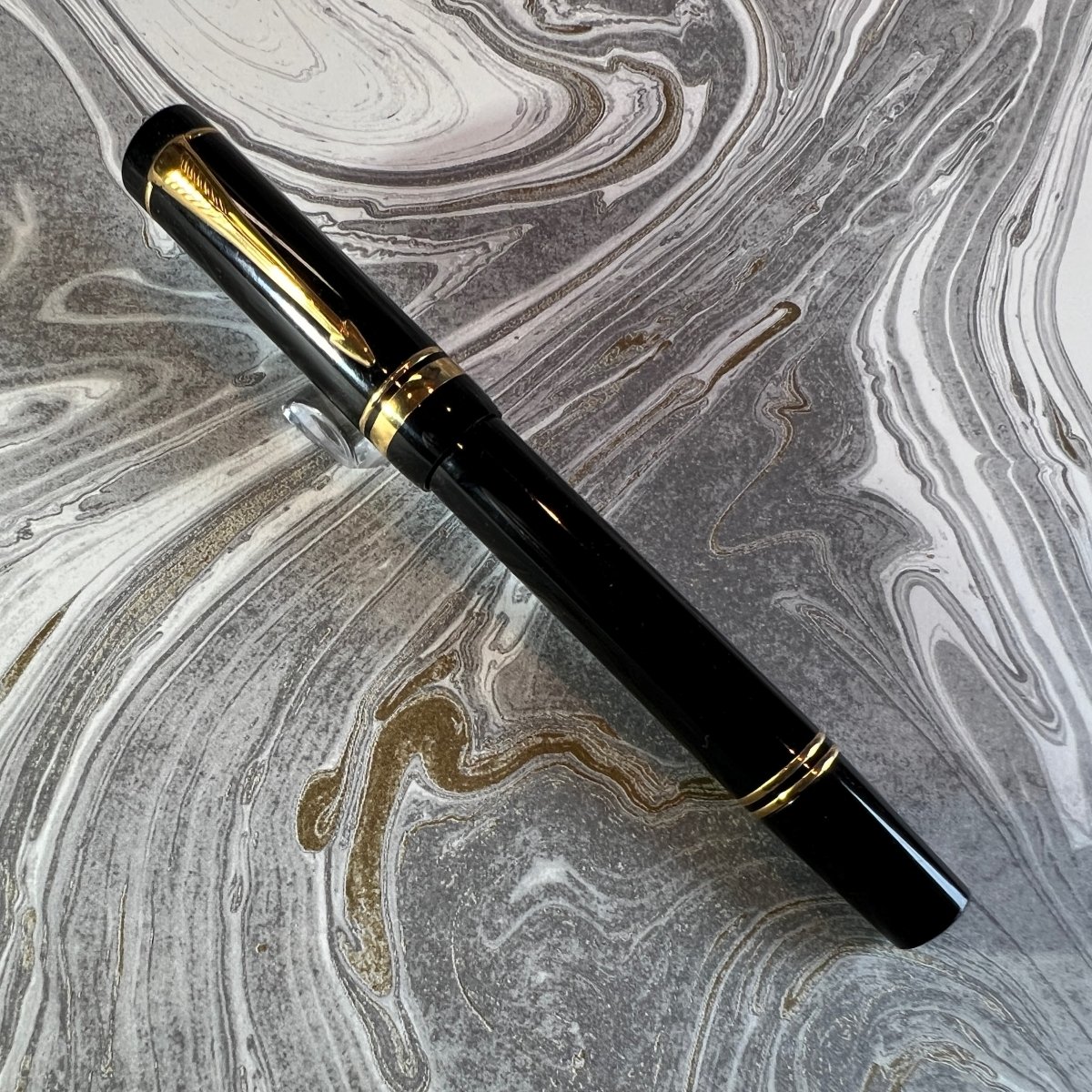Additional Information: Lovely modern Duofold in classic black and gold, with an 18K Italic nib! Includes converter, excellent writer.