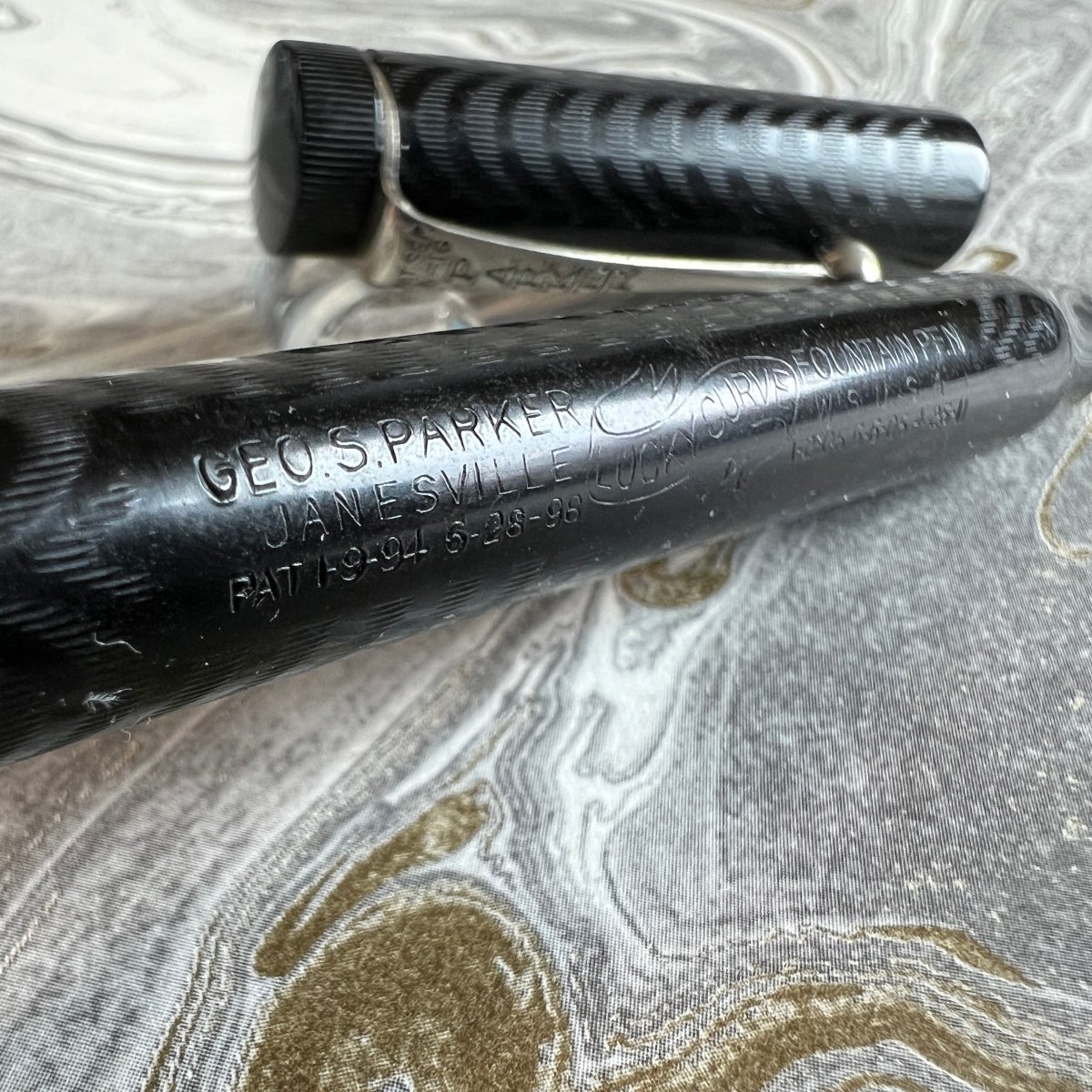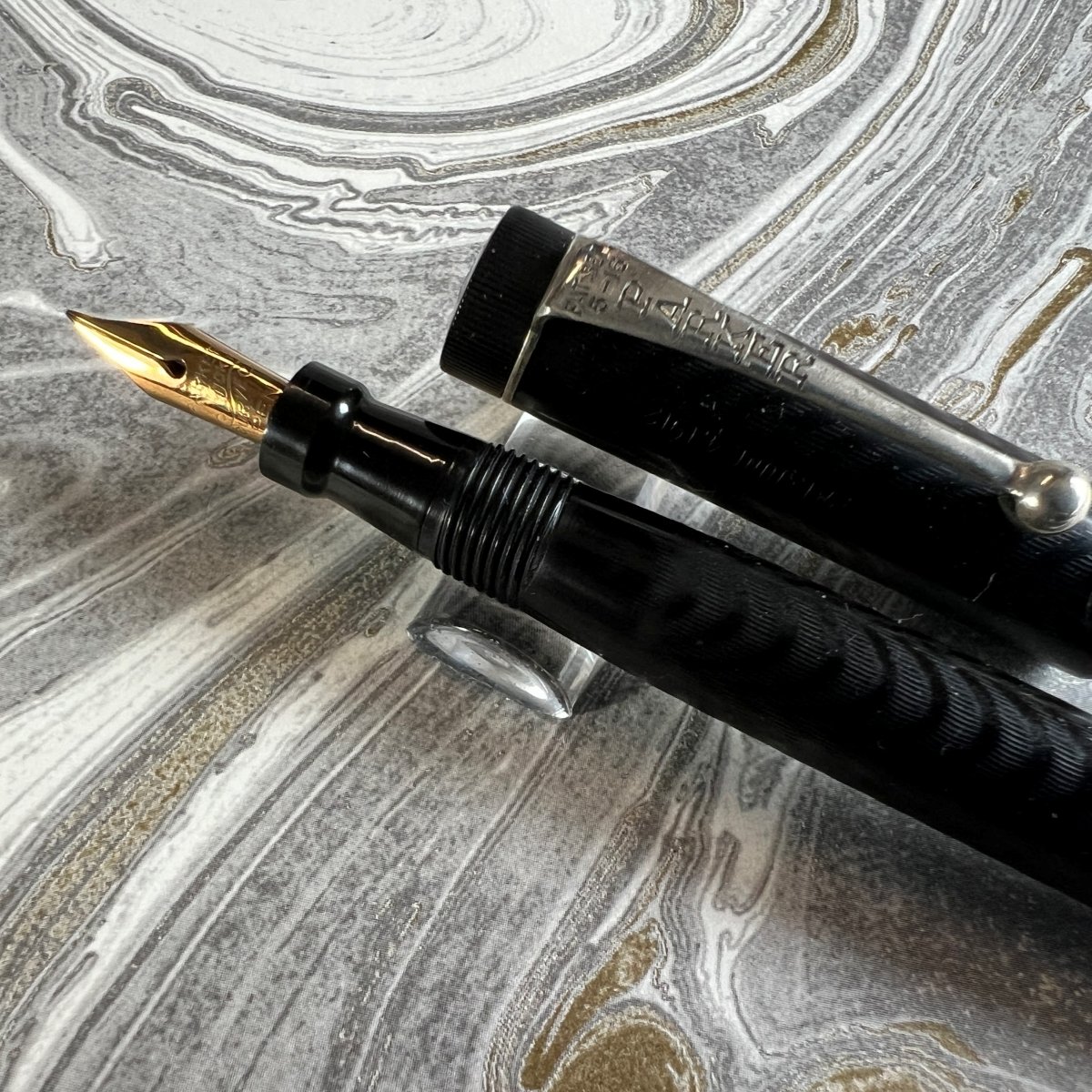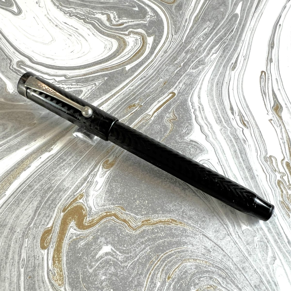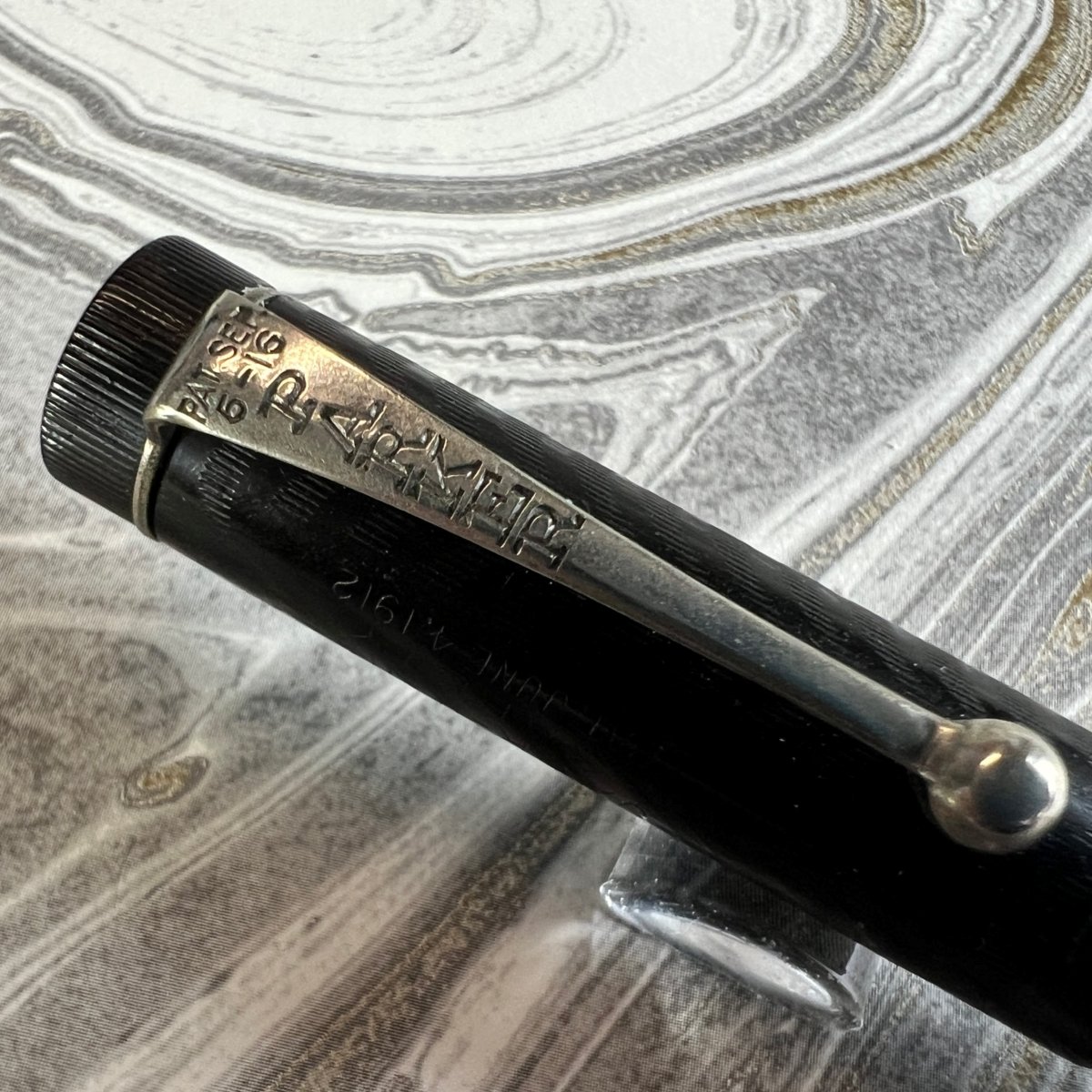 Additional Information: Excellent chasing, c/w the nickel clip which was made available in 1916 for an extra 25c. Imprints are crisp, colour is perfect, and sports a 14K flexible Lucky Curve nib, intact Lucky Curve feed. True collectors pen!