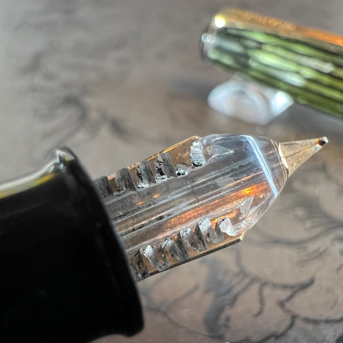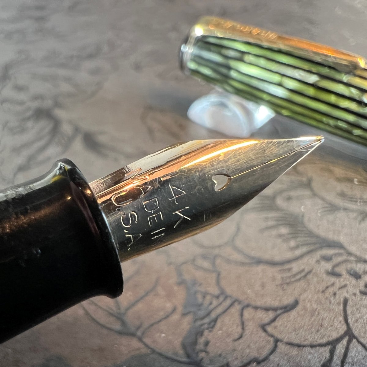 Additional Information: Apparently uninked, this Top line Wearever features a 14K nib, gold plated fittings, and their novel translucent feed which permits the user to know at a glance what colour ink it is filled with. A great pen for either a collector or someone who just wants to pull a very cool pen out to impress.